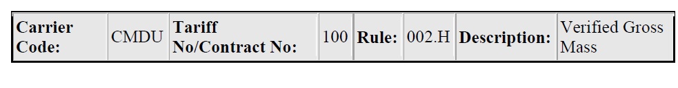 CMA CGM (America) LLC is announcing the following changes to tariff CMDU 100 Rule 002.H. This change will go into effect July 14, 2016.